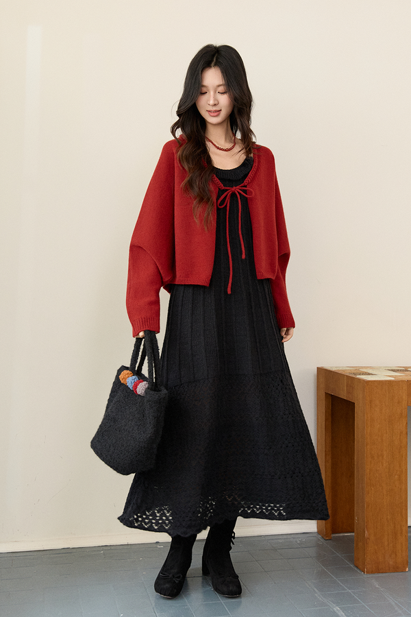 Set Gaun dan Mantel Tali Spaghetti Dijual Terpisah