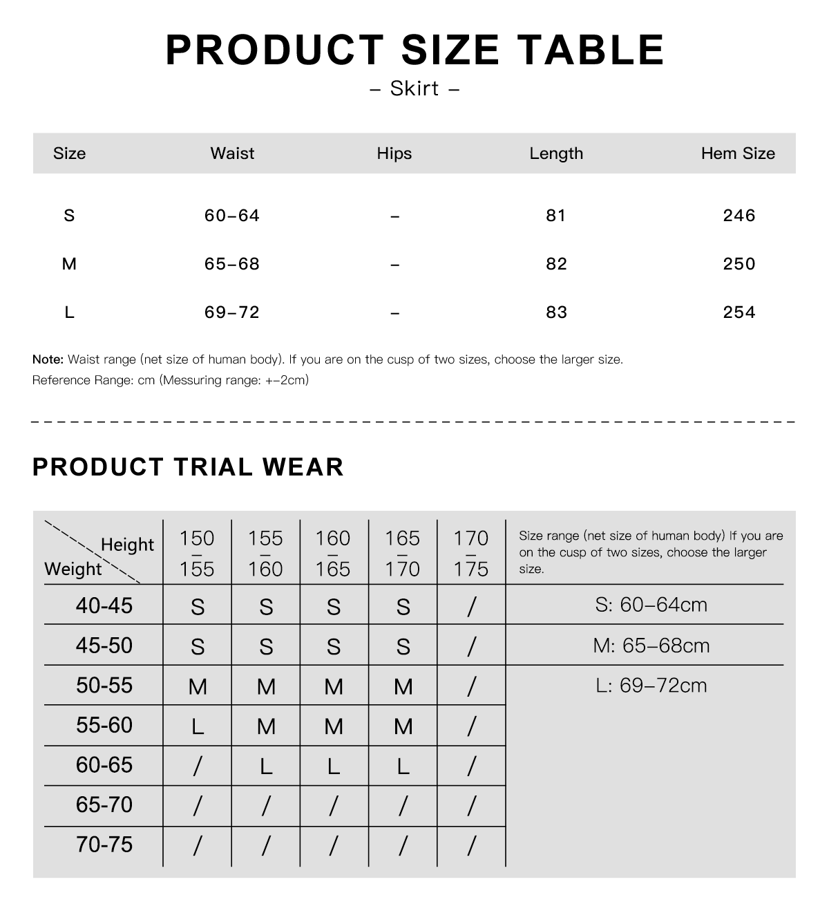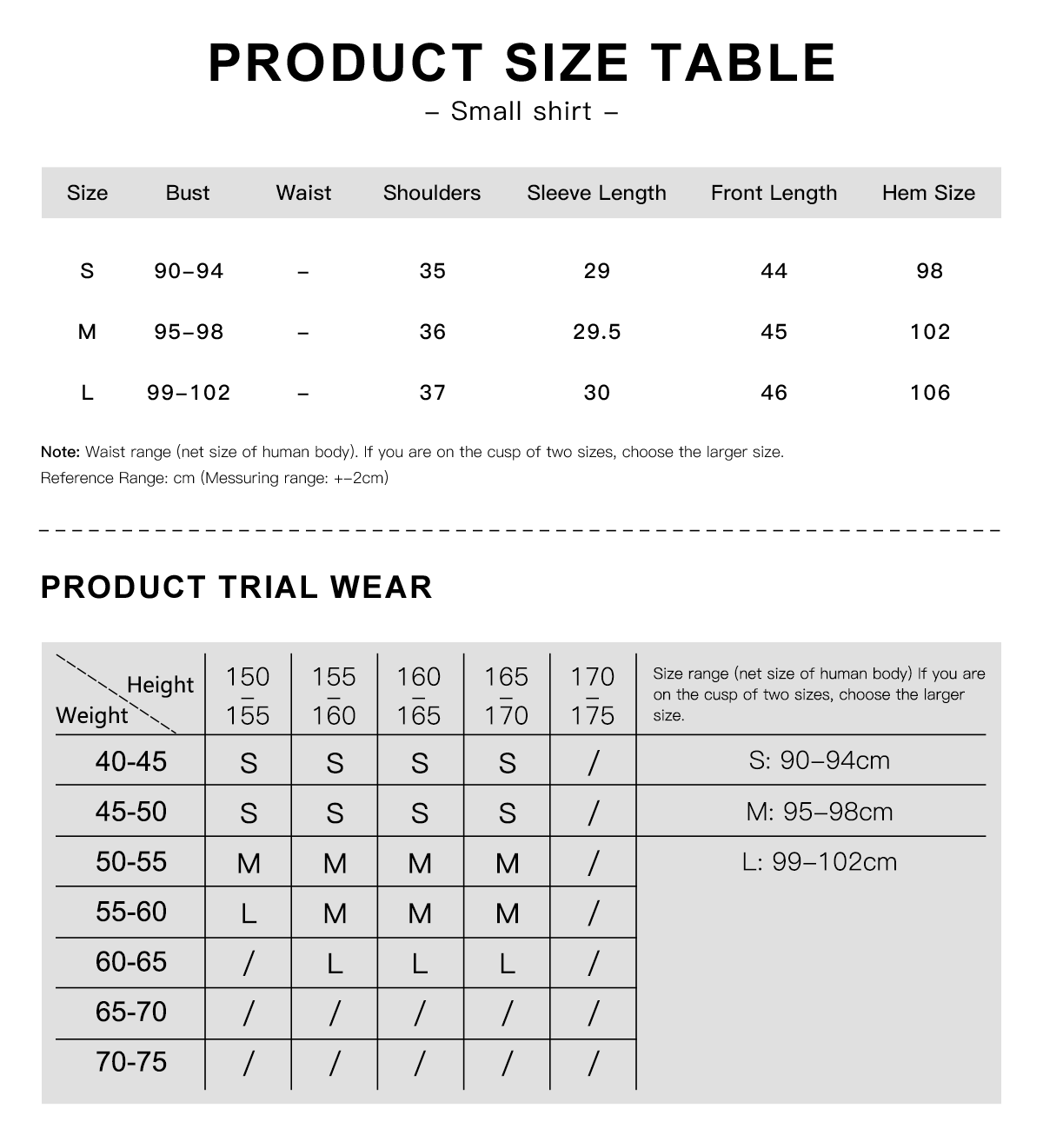 Karena semua pengukuran dilakukan secara manual dengan pakaian yang dibentangkan, mungkin ada sedikit kesalahan antara tabel ukuran dan pengukuran pakaian yang sebenarnya. Rentang Referensi: cm (Rentang pengukuran: +-2 cm)