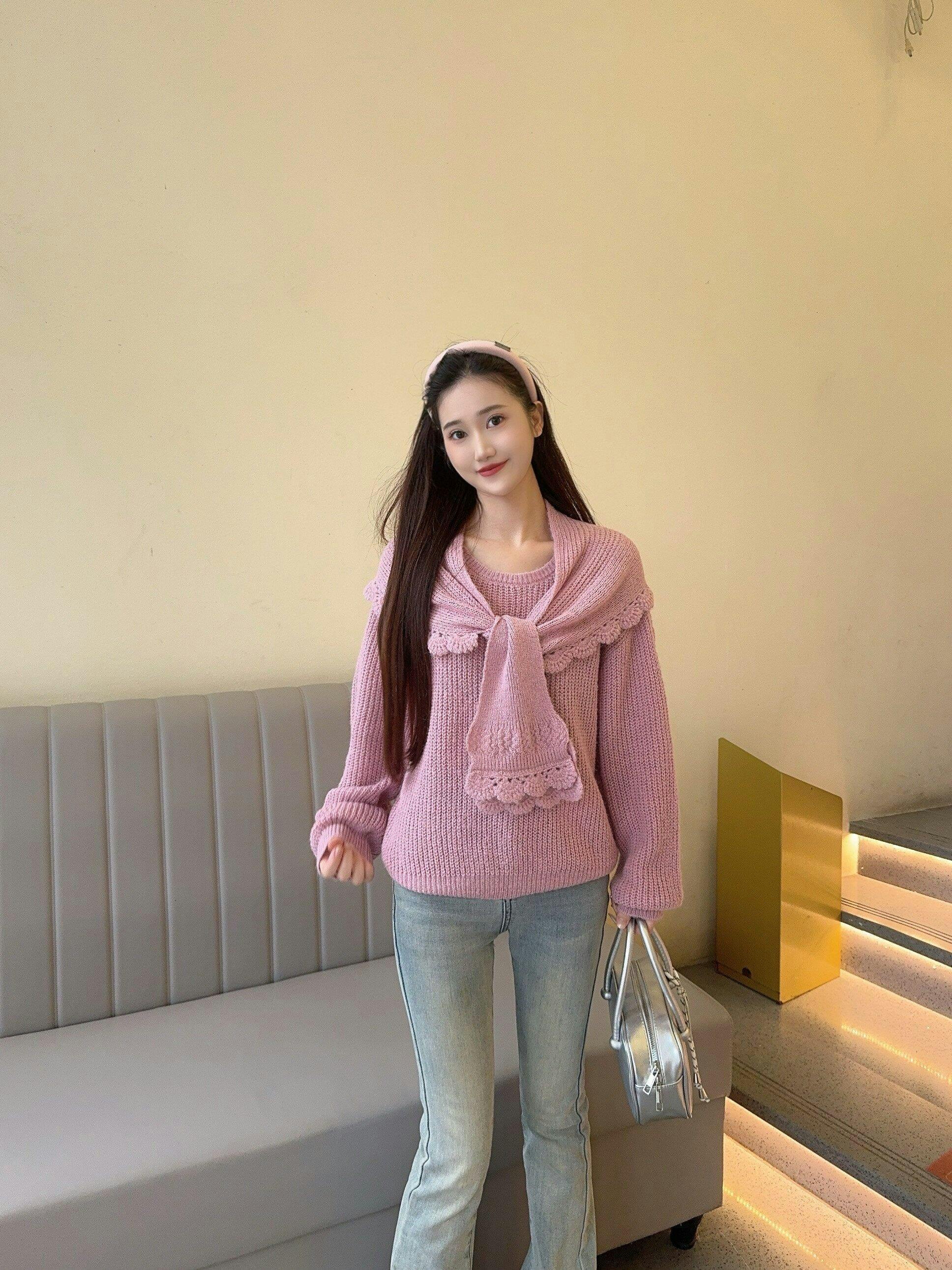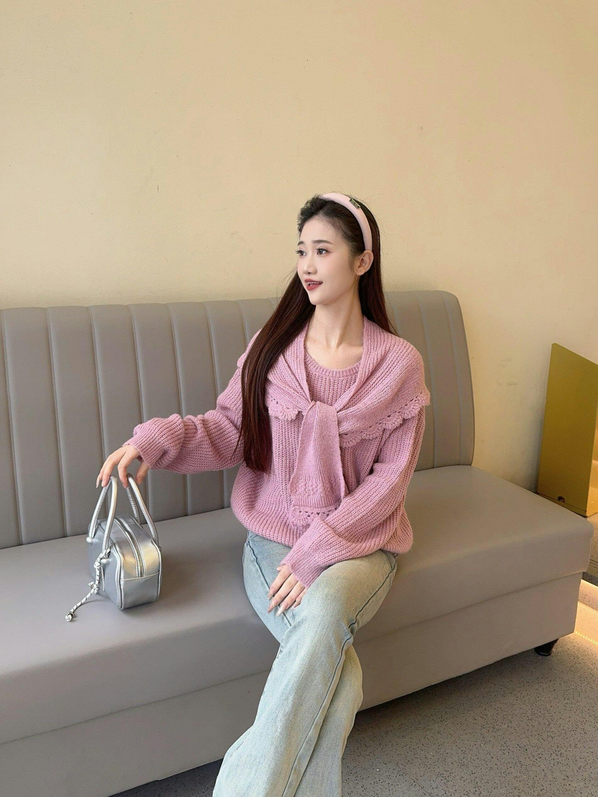 レディースニットシャツ+ショール