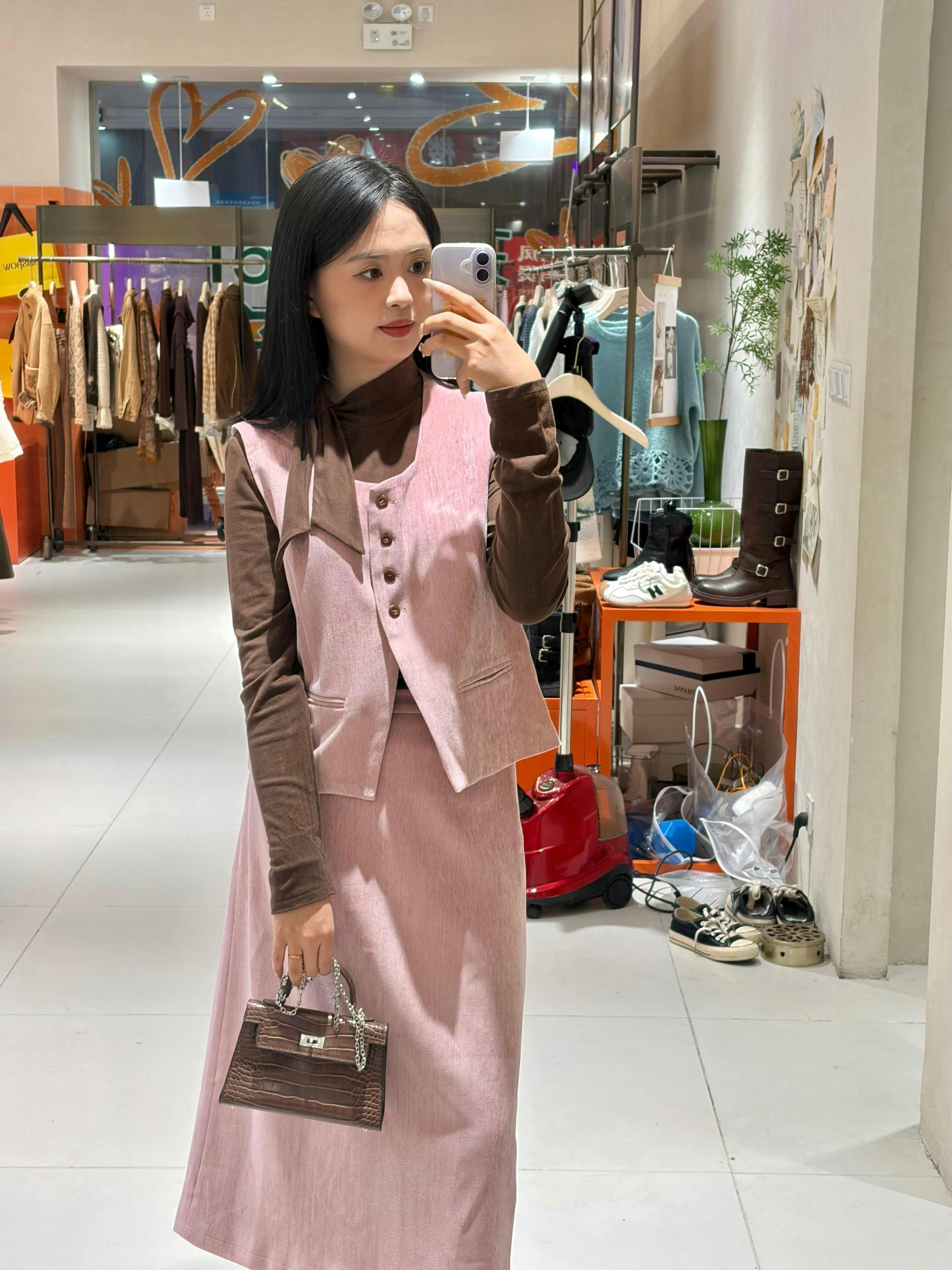 | 재료 | 조끼/스커트: 폴리에스터 96.2% + 스판덱스 3.8% 니트웨어: 비스코스 67.9% + 아크릴 25.6% + 스판덱스 6.5% |